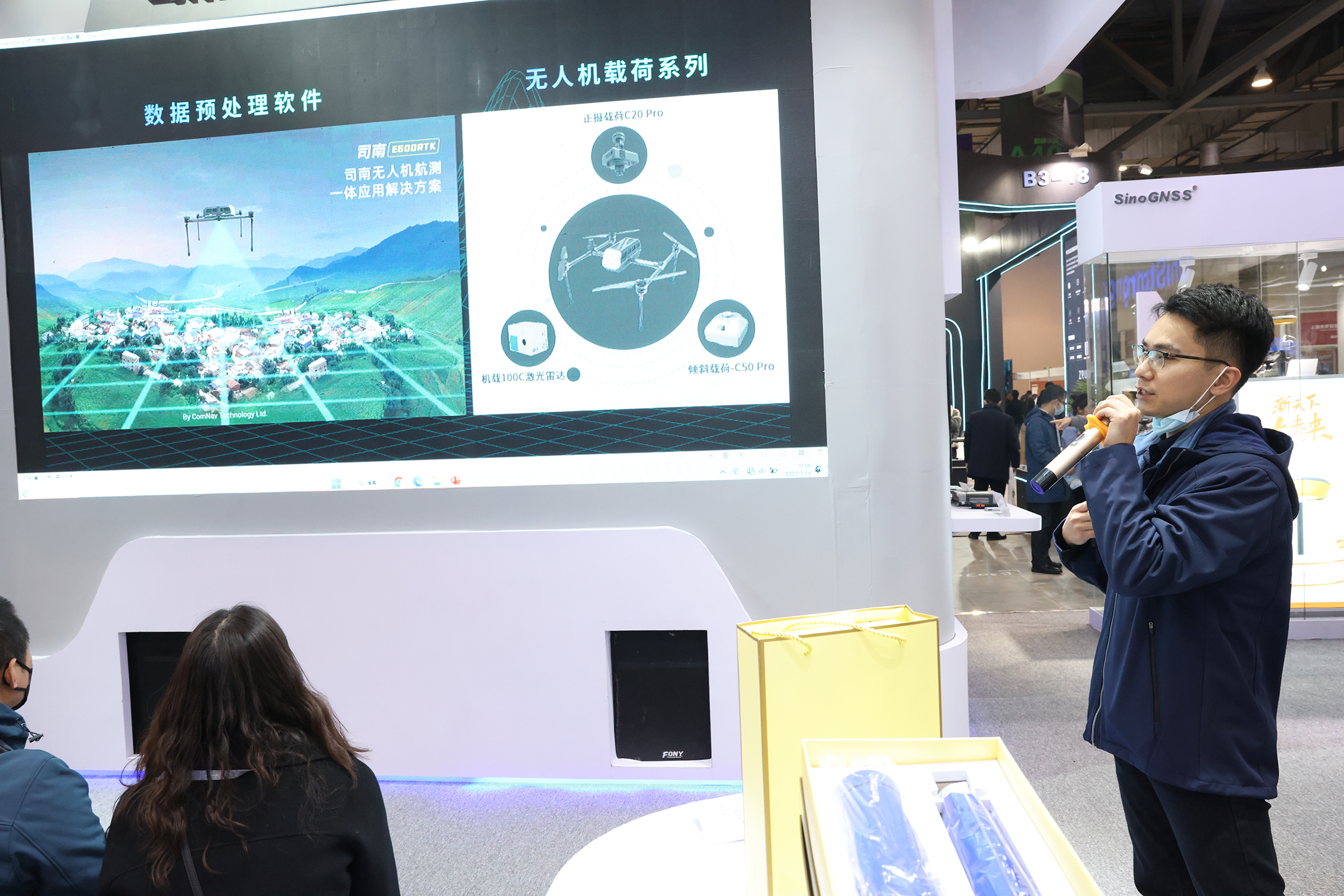 为了增进交流,技术人员在每逢整点的时间段带来RTK、测绘无人机产品的主题报告,诸多观众驻足聆听,纷纷进行产品咨询、技术交流或业务洽谈,气氛十分热烈。